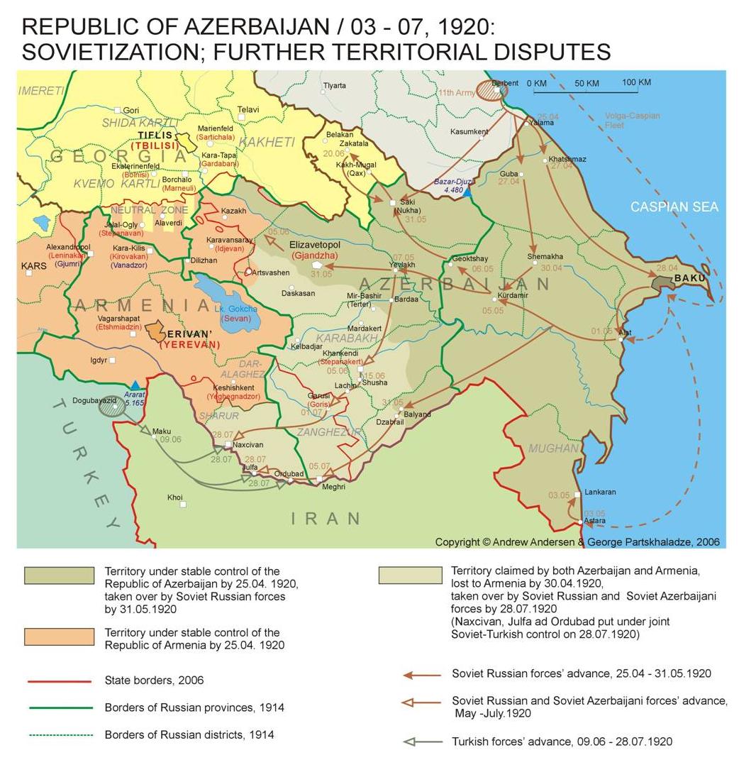 1920, Soviet Russian 11th Army invaded Azerbaijan. By the end of